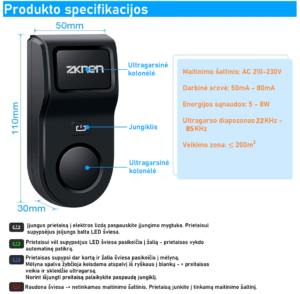 - 8W technologija – kenkėjų atbaidymo priemone yra aukštos 8 vatų galios, su naujausia ultragarso ir elektromagnetine technologija, protingai veikianti kintamuoju dažniu tarp 22 kHz – 85 kHz, taip neleisdama gyvūnams prisitaikyti, tad veikia patikimiau nei įprasti rinkoje esantys 5W – 8W įrenginiai.