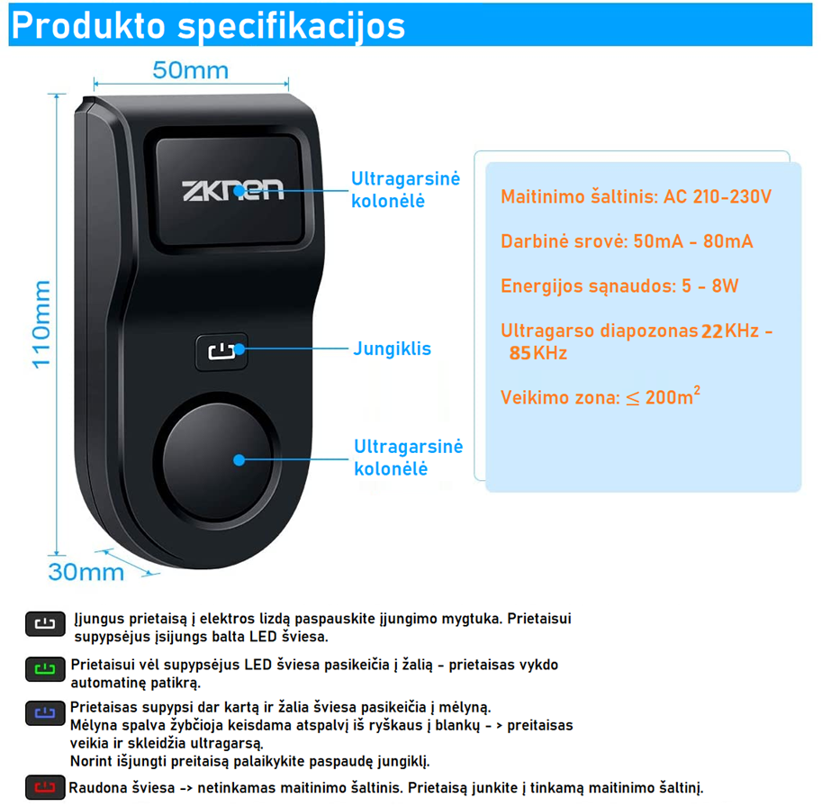 Prietaisas padeda atsikratyti pelių, žiurkių, tarakonų, uodų, vorų ir kitų kenkėjų.